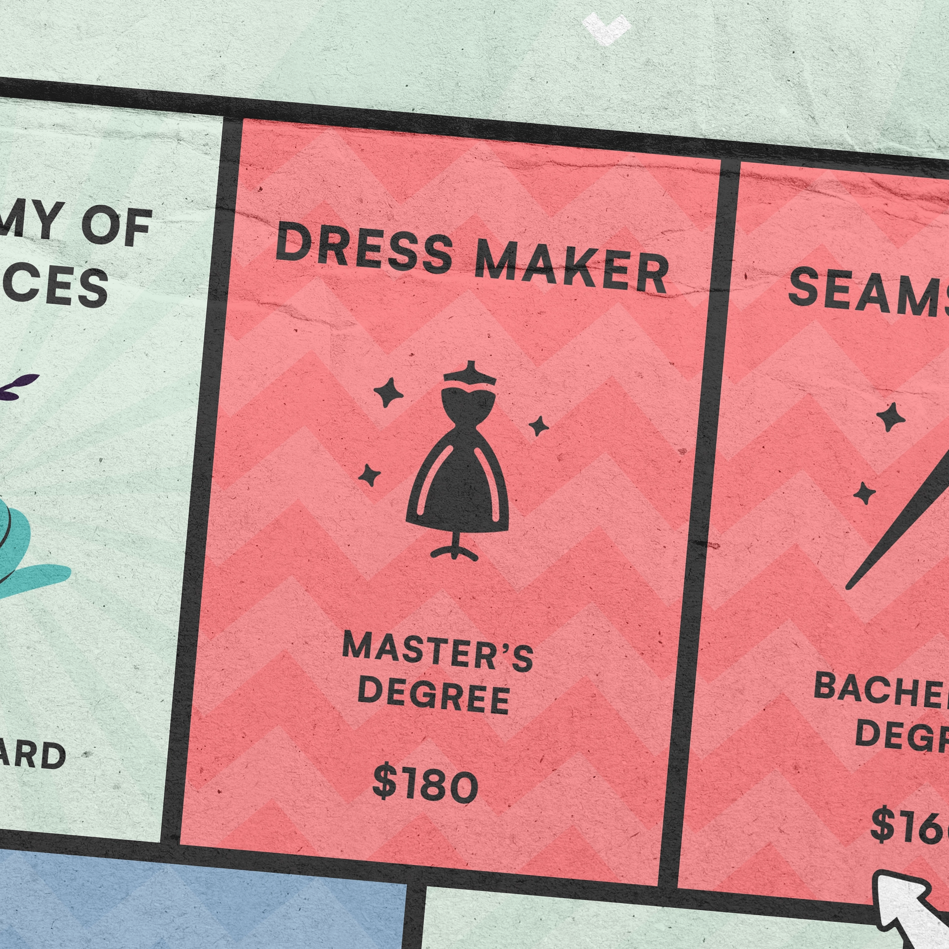 Les cases Métier peuvent être acquises avec des points d'intellect. Les joueurs qui tombent dessus doivent verser des honoraires aux joueurs en leur possession.
