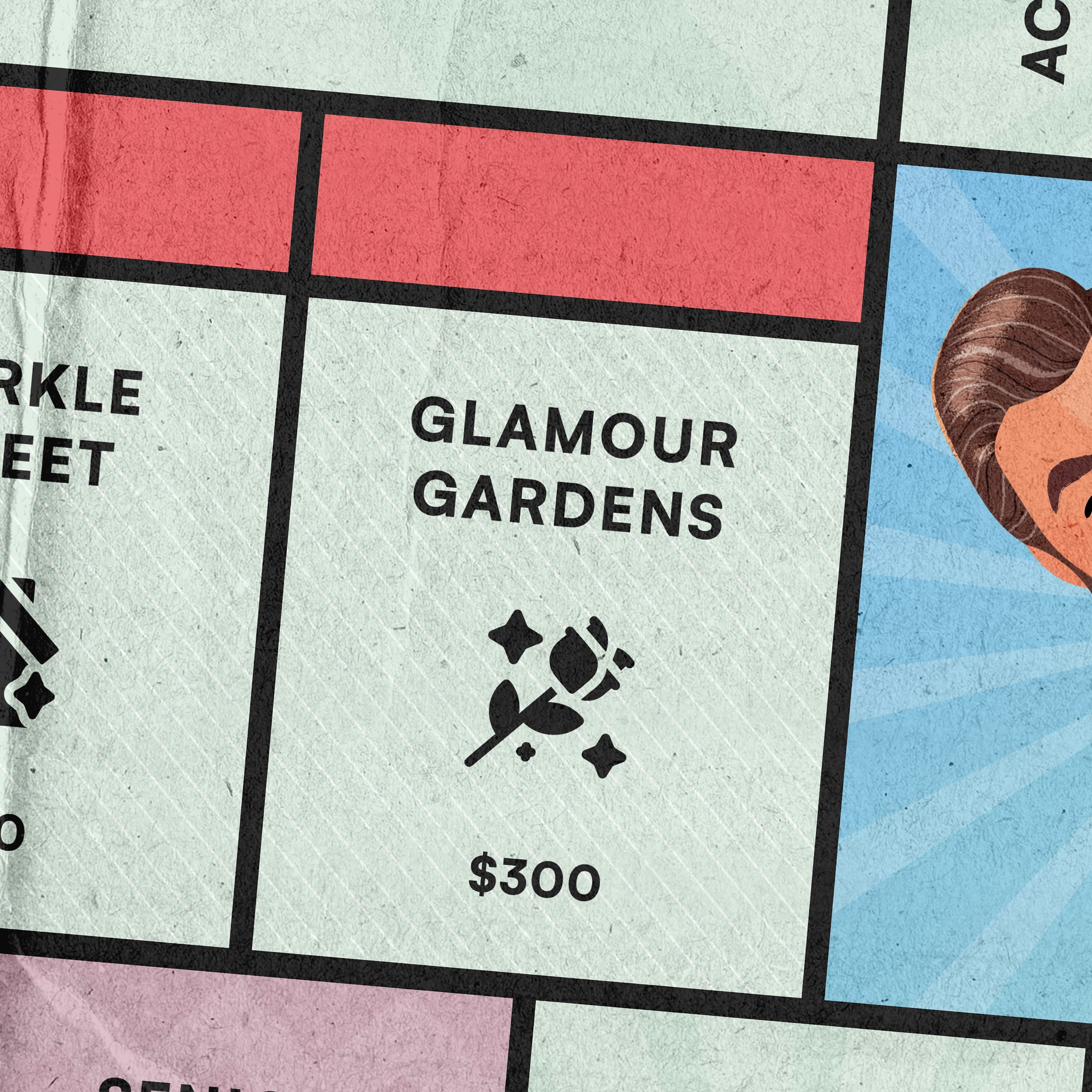Les cases Propriété peuvent être achetées avec de l'argent. Pour acheter une carte Propriété, le joueur doit posséder une des 4 cartes Petit-Ami disponibles.