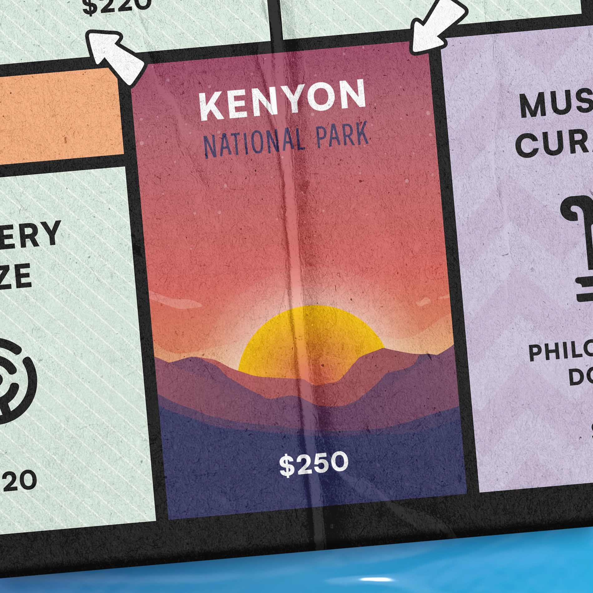 Les trois cases Parcs Nationaux peuvent être achetées et permettent aux joueurs de voyager vers la rangée intérieure du plateau. La case Disneyland agit comme une case Propriété standard.