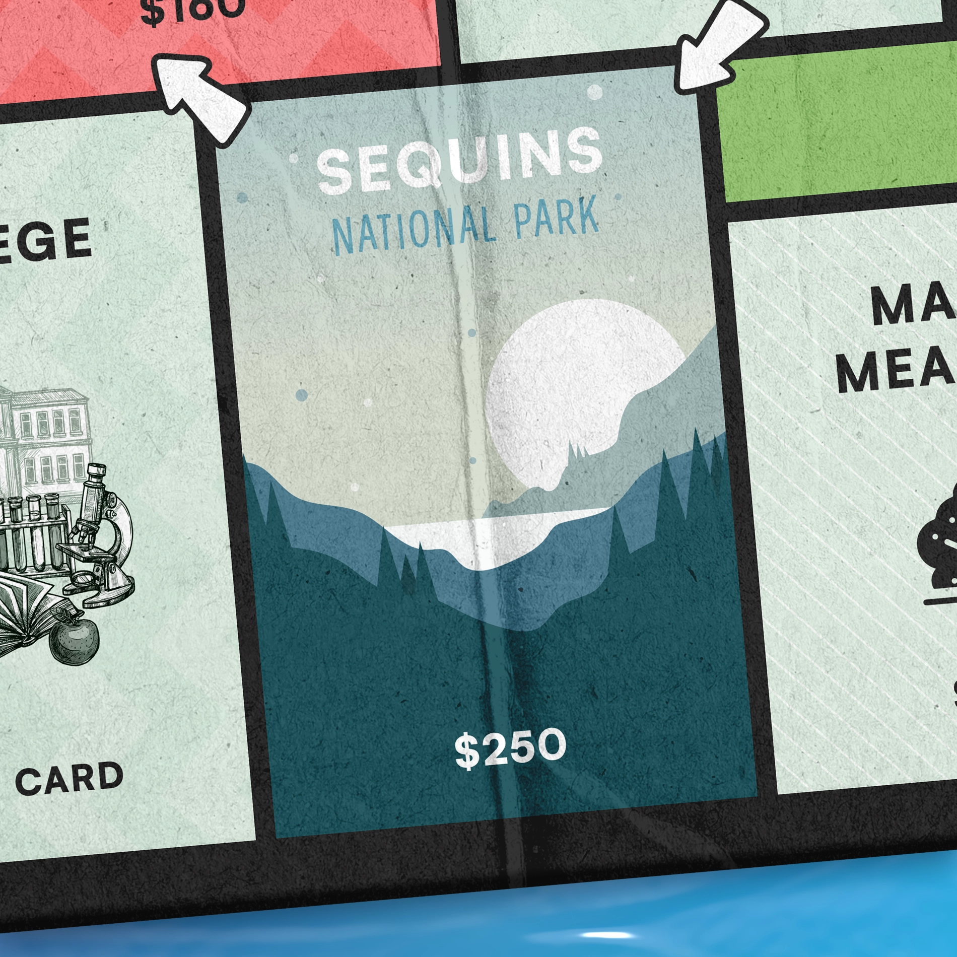 Les trois cases Parcs Nationaux peuvent être achetées et permettent aux joueurs de voyager vers la rangée intérieure du plateau. La case Disneyland agit comme une case Propriété standard.